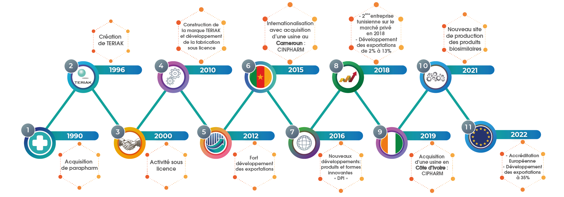 TERIAK, filiale du groupe KILANI est un acteur majeur de l'industrie pharmaceutique tunisienne. Depuis la création de la société en 1996, nous avons construit des partenariats solides avec les plus grands groupes multinationaux. Notre développement s'est fait à travers une éthique et des valeurs partagées avec nos 722 collaborateurs.